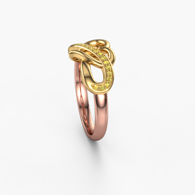 How would you describe your own style? Are you looking for something uniquely different? This infinity rose gold Yael ring is astonishing! Simply customize to your or her own liking. This ring is set with yellow sapphire. These yellow sapphire have been carefully selected because your ring must be adorned with nothing but the most beautiful gemstone. Wouldn't you agree? Our expert goldsmith will create your ring in our own crafting studios, where the yellow sapphire will be set with care. The ring will then be polished to perfection to give it that extra sparkle. It's a perfect ring for a woman of excellent taste!Customize your own infinityYael ring, which will then be created by our goldsmiths with great passion. Do you prefer a different option than is shown here in the rose gold Yael ring? Then our online tools offers various options. Feel free to ask us for help if you are unable to succeed. We are happy to answer your questions!By using a combination of the latest modern techniques, combined with ancient crafting, we can make all our rings in our own studio. Each jewel is made to order. This is advantageous because we can offer you a price you won't find anywhere else.To make it easier for you, we offer a 30 day return policy. Check our terms and conditions.