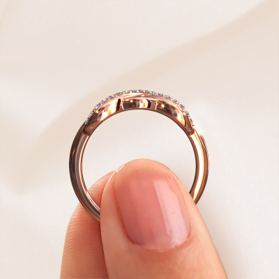 How would you describe your own style? Are you looking for something uniquely different? This infinity rose gold Lizan ring is astonishing! Simply customize to your or her own liking. This ring is set with zirconia. These cz-stones have been carefully selected because your ring must be adorned with nothing but the most beautiful gemstone. Wouldn't you agree? Our expert goldsmith will create your ring in our own crafting studios, where the zirconia will be set with care. The ring will then be polished to perfection to give it that extra sparkle. It's a perfect ring for a woman of excellent taste!As soon as you finished designing your Lizan ring with our online tool, our goldsmiths will start their creative process of making your ring. This will be done with passion and care, according ancient crafting. On top of that, our jewels are made of eco-friendly materials. Simply customize online with our online tool, if you want any changes made. If you want specific changes made to your Lizan ring, that are unavailable in our online tool, please feel free to contact our expert designers.Because we design and deliver our own rings, we can offer you a ring at a price you won't find anywhere else. A ring is made to order, which helps prevent excess supplies, so we can make you a great price offer. We understand it feels risky, buying your ring online, but we will gladly assist in the designing process, taking your budget into consideration.To make it easier for you, we offer a 30 day return policy. Check our terms and conditions.