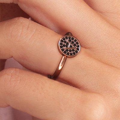 This is an exquisite, personal rose gold Initial ring Initial ring 021 with black diamond which is very popular now. It goes without saying that you decide on the inscription of the ring. It can be your own mantra or an engravement in honour of a special person in your life. Or just the first letter of a single meaningful word. That's the beauty of a customized piece of jewellery. It can be created to your liking and it can represent whatever you want it to. Our jewellery is handmade to perfection by our expert goldsmiths. How do you like this trendy rose gold ring? Simply customize this Initial ring 021 ring, using our online tool. Subsequently, your personal initials Initial ring 021 ring will be made by hand by our goldsmiths. Precious metals and gemstones can be customized to your liking. Do you have specific preferences which are unavailable in our online tool? Please feel free to contact us. We will customize your personal trendy ring to your liking.After receiving your order, our goldsmiths will start the creative process of making your Initial ring 021 ring. We don't keep stock. This is advantageous because these costs will not be passed on to you. Therefore, we can offer jewellery at exceptionally low prices.To make it easier for you, we offer a 30 day return policy. Check our terms and conditions.