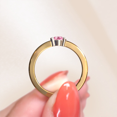 This extraordinary ring is called Yasmin 1. This type of ring is known as a memoire ring, because it's birthstones are set in a continuous line. This makes it easy to combine with other rings. The band of this 14 Carat gold ring is set in a combination of pink sapphire and pink sapphire 4 mm. You can easily choose the combination you prefer online. As you can see, a single pink sapphire is set in this single alliance gold ring. The memoire ring represents collaboration. And that is precisely what these gemstones do, collaborate. Together they add a beautiful effect to the band of a classic ring! Such a meaningful ring, wouldn't you agree? All our hand selected pink sapphire are positioned by hand by our expert goldsmith. It's a precise task, which can only be completed successfully through the combination of pure craftsmanship and usage of the latest techniques which give it an optimal effect. To create a perfect reflection of light, all the gemstones have to be perfectly aligned in the same way. During manufacturing, the expert goldsmith will therefore monitor the reflection of light constantly to check whether the pink sapphire are aligned properly. This requires a skilled hand and a lot of patience but then the end product will be a true piece of art. And that is our mission!Because we design and deliver our own rings, we can offer you a ring at a price you won't find anywhere else. A ring is made to order, which helps prevent excess supplies, so we can make you a great price offer. We understand it feels risky, buying your ring online, but we will gladly assist in the designing process, taking your budget into consideration.Our team of talented, passionate designers add new ring designs to our online collection daily. Our objective in doing so, is to be able to offer you a wide variety of jewels. Please feel free to request a quote if you have specific wishes for your ring. We guarantee to make you an offer you can't refuse.To make it easier for you, we offer a 30 day return policy. Check our terms and conditions.
