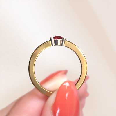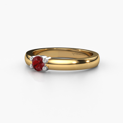 This extraordinary ring is called Yasmin 1. This type of ring is known as a memoire ring, because it's birthstones are set in a continuous line. This makes it easy to combine with other rings. The band of this 14 Carat gold ring is set in a combination of ruby and ruby 4 mm. You can easily choose the combination you prefer online. As you can see, a single ruby is set in this single alliance gold ring. The memoire ring represents collaboration. And that is precisely what these gemstones do, collaborate. Together they add a beautiful effect to the band of a classic ring! Such a meaningful ring, wouldn't you agree? All our hand selected ruby are positioned by hand by our expert goldsmith. It's a precise task, which can only be completed successfully through the combination of pure craftsmanship and usage of the latest techniques which give it an optimal effect. To create a perfect reflection of light, all the gemstones have to be perfectly aligned in the same way. During manufacturing, the expert goldsmith will therefore monitor the reflection of light constantly to check whether the ruby are aligned properly. This requires a skilled hand and a lot of patience but then the end product will be a true piece of art. And that is our mission!Because we design and deliver our own rings, we can offer you a ring at a price you won't find anywhere else. A ring is made to order, which helps prevent excess supplies, so we can make you a great price offer. We understand it feels risky, buying your ring online, but we will gladly assist in the designing process, taking your budget into consideration.Our team of talented, passionate designers add new ring designs to our online collection daily. Our objective in doing so, is to be able to offer you a wide variety of jewels. Please feel free to request a quote if you have specific wishes for your ring. We guarantee to make you an offer you can't refuse.To make it easier for you, we offer a 30 day return policy. Check our terms and conditions.