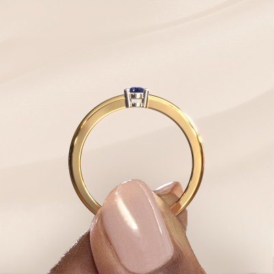 This extraordinary ring is called Michelle 1. This type of ring is known as a memoire ring, because it's birthstones are set in a continuous line. This makes it easy to combine with other rings. The band of this 14 Carat gold ring is set in a combination of sapphire and sapphire 2.7 mm. You can easily choose the combination you prefer online. As you can see, a single sapphire is set in this single alliance gold ring. The memoire ring represents collaboration. And that is precisely what these gemstones do, collaborate. Together they add a beautiful effect to the band of a classic ring! Such a meaningful ring, wouldn't you agree? All our hand selected sapphire are positioned by hand by our expert goldsmith. It's a precise task, which can only be completed successfully through the combination of pure craftsmanship and usage of the latest techniques which give it an optimal effect. To create a perfect reflection of light, all the gemstones have to be perfectly aligned in the same way. During manufacturing, the expert goldsmith will therefore monitor the reflection of light constantly to check whether the sapphire are aligned properly. This requires a skilled hand and a lot of patience but then the end product will be a true piece of art. And that is our mission!By using a combination of the latest modern techniques, combined with ancient crafting, we can make all our rings in our own studio. Each jewel is made to order. This is advantageous because we can offer you a price you won't find anywhere else.