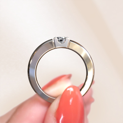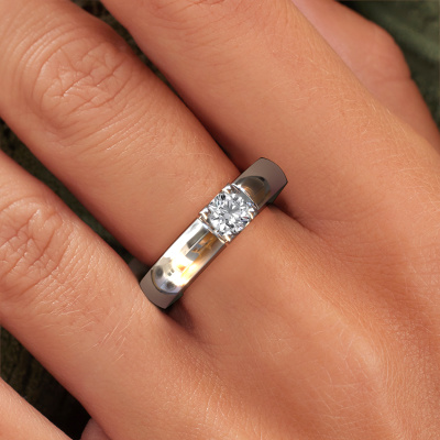 This extraordinary ring is called Rianne 1. This type of ring is known as a memoire ring, because it's birthstones are set in a continuous line. This makes it easy to combine with other rings. The band of this platinum ring is set in a combination of diamond and diamond 0.40 crt. You can easily choose the combination you prefer online. As you can see, a single diamond is set in this single alliance platinum ring. The memoire ring represents collaboration. And that is precisely what these gemstones do, collaborate. Together they add a beautiful effect to the band of a classic ring! Such a meaningful ring, wouldn't you agree? All our hand selected diamonds are positioned by hand by our expert goldsmith. It's a precise task, which can only be completed successfully through the combination of pure craftsmanship and usage of the latest techniques which give it an optimal effect. To create a perfect reflection of light, all the gemstones have to be perfectly aligned in the same way. During manufacturing, the expert goldsmith will therefore monitor the reflection of light constantly to check whether the diamonds are aligned properly. This requires a skilled hand and a lot of patience but then the end product will be a true piece of art. And that is our mission!By using a combination of the latest modern techniques, combined with ancient crafting, we can make all our rings in our own studio. Each jewel is made to order. This is advantageous because we can offer you a price you won't find anywhere else.Our team of talented, passionate designers add new ring designs to our online collection daily. Our objective in doing so, is to be able to offer you a wide variety of jewels. Please feel free to request a quote if you have specific wishes for your ring. We guarantee to make you an offer you can't refuse.To make it easier for you, we offer a 30 day return policy. Check our terms and conditions.