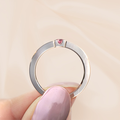 This extraordinary ring is called Dana 1. This type of ring is known as a memoire ring, because it's birthstones are set in a continuous line. This makes it easy to combine with other rings. The band of this platinum ring is set in a combination of tourmaline pink and tourmaline pink 3.7 mm. You can easily choose the combination you prefer online. As you can see, a single tourmaline pink is set in this single alliance platinum ring. The memoire ring represents collaboration. And that is precisely what these gemstones do, collaborate. Together they add a beautiful effect to the band of a modern ring! Such a meaningful ring, wouldn't you agree? All our hand selected tourmaline pink are positioned by hand by our expert goldsmith. It's a precise task, which can only be completed successfully through the combination of pure craftsmanship and usage of the latest techniques which give it an optimal effect. To create a perfect reflection of light, all the gemstones have to be perfectly aligned in the same way. During manufacturing, the expert goldsmith will therefore monitor the reflection of light constantly to check whether the tourmaline pink are aligned properly. This requires a skilled hand and a lot of patience but then the end product will be a true piece of art. And that is our mission!After receiving your order, our goldsmiths will passionately start the creative process of making your ring in our own studio. Because we don't have a big stockpile, these costs will not be passed on to you. Our pricing is proof of that! We offer top quality jewels at lowest price, guaranteed.Our team of talented, passionate designers add new ring designs to our online collection daily. Our objective in doing so, is to be able to offer you a wide variety of jewels. Please feel free to request a quote if you have specific wishes for your ring. We guarantee to make you an offer you can't refuse.To make it easier for you, we offer a 30 day return policy. Check our terms and conditions.