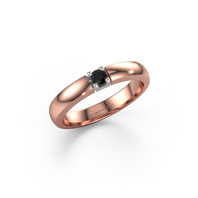This extraordinary ring is called Rianne 1. This type of ring is known as a memoire ring, because it's birthstones are set in a continuous line. This makes it easy to combine with other rings. The band of this 14 Carat rose gold ring is set in a combination of black diamond and black diamond 0.12 crt. You can easily choose the combination you prefer online. As you can see, a single black diamond is set in this single alliance rose gold ring. The memoire ring represents collaboration. And that is precisely what these gemstones do, collaborate. Together they add a beautiful effect to the band of a classic ring! Such a meaningful ring, wouldn't you agree? All our hand selected black diamonds are positioned by hand by our expert goldsmith. It's a precise task, which can only be completed successfully through the combination of pure craftsmanship and usage of the latest techniques which give it an optimal effect. To create a perfect reflection of light, all the gemstones have to be perfectly aligned in the same way. During manufacturing, the expert goldsmith will therefore monitor the reflection of light constantly to check whether the black diamonds are aligned properly. This requires a skilled hand and a lot of patience but then the end product will be a true piece of art. And that is our mission!By using a combination of the latest modern techniques, combined with ancient crafting, we can make all our rings in our own studio. Each jewel is made to order. This is advantageous because we can offer you a price you won't find anywhere else.Our team of talented, passionate designers add new ring designs to our online collection daily. Our objective in doing so, is to be able to offer you a wide variety of jewels. Please feel free to request a quote if you have specific wishes for your ring. We guarantee to make you an offer you can't refuse.To make it easier for you, we offer a 30 day return policy. Check our terms and conditions.