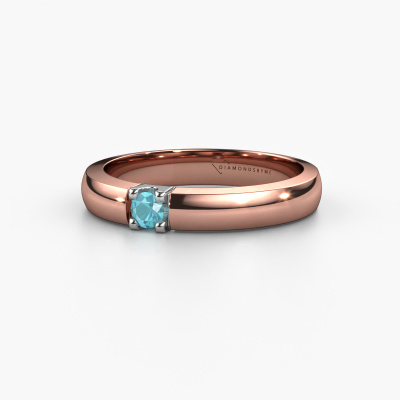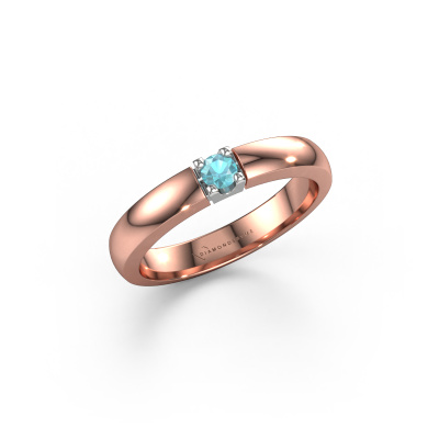 This extraordinary ring is called Rianne 1. This type of ring is known as a memoire ring, because it's birthstones are set in a continuous line. This makes it easy to combine with other rings. The band of this 14 Carat rose gold ring is set in a combination of blue topaz and blue topaz 3 mm. You can easily choose the combination you prefer online. As you can see, a single blue topaz is set in this single alliance rose gold ring. The memoire ring represents collaboration. And that is precisely what these gemstones do, collaborate. Together they add a beautiful effect to the band of a classic ring! Such a meaningful ring, wouldn't you agree? All our hand selected blue topaz are positioned by hand by our expert goldsmith. It's a precise task, which can only be completed successfully through the combination of pure craftsmanship and usage of the latest techniques which give it an optimal effect. To create a perfect reflection of light, all the gemstones have to be perfectly aligned in the same way. During manufacturing, the expert goldsmith will therefore monitor the reflection of light constantly to check whether the blue topaz are aligned properly. This requires a skilled hand and a lot of patience but then the end product will be a true piece of art. And that is our mission!By using a combination of the latest modern techniques, combined with ancient crafting, we can make all our rings in our own studio. Each jewel is made to order. This is advantageous because we can offer you a price you won't find anywhere else.Our team of talented, passionate designers add new ring designs to our online collection daily. Our objective in doing so, is to be able to offer you a wide variety of jewels. Please feel free to request a quote if you have specific wishes for your ring. We guarantee to make you an offer you can't refuse.To make it easier for you, we offer a 30 day return policy. Check our terms and conditions.