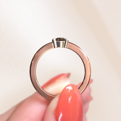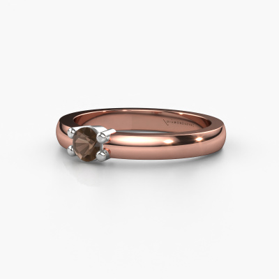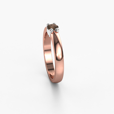 This extraordinary ring is called Yasmin 1. This type of ring is known as a memoire ring, because it's birthstones are set in a continuous line. This makes it easy to combine with other rings. The band of this 14 Carat rose gold ring is set in a combination of smokey quartz and smokey quartz 4 mm. You can easily choose the combination you prefer online. As you can see, a single smokey quartz is set in this single alliance rose gold ring. The memoire ring represents collaboration. And that is precisely what these gemstones do, collaborate. Together they add a beautiful effect to the band of a classic ring! Such a meaningful ring, wouldn't you agree? All our hand selected smokey quartz are positioned by hand by our expert goldsmith. It's a precise task, which can only be completed successfully through the combination of pure craftsmanship and usage of the latest techniques which give it an optimal effect. To create a perfect reflection of light, all the gemstones have to be perfectly aligned in the same way. During manufacturing, the expert goldsmith will therefore monitor the reflection of light constantly to check whether the smokey quartz are aligned properly. This requires a skilled hand and a lot of patience but then the end product will be a true piece of art. And that is our mission!Because we design and deliver our own rings, we can offer you a ring at a price you won't find anywhere else. A ring is made to order, which helps prevent excess supplies, so we can make you a great price offer. We understand it feels risky, buying your ring online, but we will gladly assist in the designing process, taking your budget into consideration.Our team of talented, passionate designers add new ring designs to our online collection daily. Our objective in doing so, is to be able to offer you a wide variety of jewels. Please feel free to request a quote if you have specific wishes for your ring. We guarantee to make you an offer you can't refuse.To make it easier for you, we offer a 30 day return policy. Check our terms and conditions.