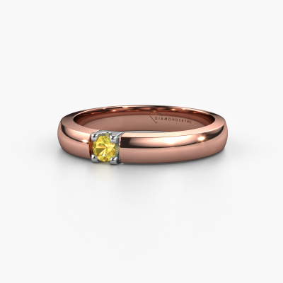 This extraordinary ring is called Rianne 1. This type of ring is known as a memoire ring, because it's birthstones are set in a continuous line. This makes it easy to combine with other rings. The band of this 14 Carat rose gold ring is set in a combination of yellow sapphire and yellow sapphire 3 mm. You can easily choose the combination you prefer online. As you can see, a single yellow sapphire is set in this single alliance rose gold ring. The memoire ring represents collaboration. And that is precisely what these gemstones do, collaborate. Together they add a beautiful effect to the band of a classic ring! Such a meaningful ring, wouldn't you agree? All our hand selected yellow sapphire are positioned by hand by our expert goldsmith. It's a precise task, which can only be completed successfully through the combination of pure craftsmanship and usage of the latest techniques which give it an optimal effect. To create a perfect reflection of light, all the gemstones have to be perfectly aligned in the same way. During manufacturing, the expert goldsmith will therefore monitor the reflection of light constantly to check whether the yellow sapphire are aligned properly. This requires a skilled hand and a lot of patience but then the end product will be a true piece of art. And that is our mission!By using a combination of the latest modern techniques, combined with ancient crafting, we can make all our rings in our own studio. Each jewel is made to order. This is advantageous because we can offer you a price you won't find anywhere else.Our team of talented, passionate designers add new ring designs to our online collection daily. Our objective in doing so, is to be able to offer you a wide variety of jewels. Please feel free to request a quote if you have specific wishes for your ring. We guarantee to make you an offer you can't refuse.To make it easier for you, we offer a 30 day return policy. Check our terms and conditions.