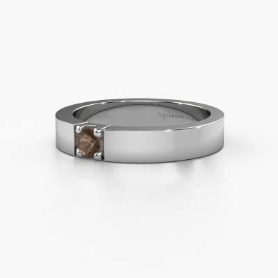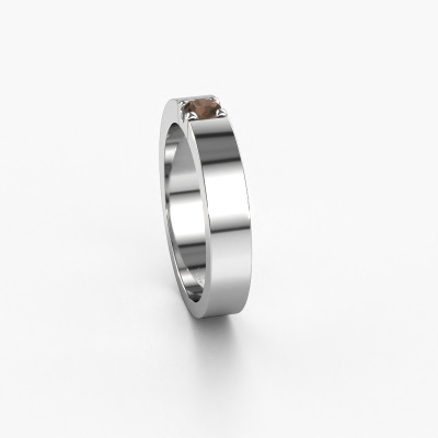 This extraordinary ring is called Dana 1. This type of ring is known as a memoire ring, because it's birthstones are set in a continuous line. This makes it easy to combine with other rings. The band of this 14 Carat white gold ring is set in a combination of smokey quartz and smokey quartz 3.7 mm. You can easily choose the combination you prefer online. As you can see, a single smokey quartz is set in this single alliance white gold ring. The memoire ring represents collaboration. And that is precisely what these gemstones do, collaborate. Together they add a beautiful effect to the band of a modern ring! Such a meaningful ring, wouldn't you agree? All our hand selected smokey quartz are positioned by hand by our expert goldsmith. It's a precise task, which can only be completed successfully through the combination of pure craftsmanship and usage of the latest techniques which give it an optimal effect. To create a perfect reflection of light, all the gemstones have to be perfectly aligned in the same way. During manufacturing, the expert goldsmith will therefore monitor the reflection of light constantly to check whether the smokey quartz are aligned properly. This requires a skilled hand and a lot of patience but then the end product will be a true piece of art. And that is our mission!After receiving your order, our goldsmiths will passionately start the creative process of making your ring in our own studio. Because we don't have a big stockpile, these costs will not be passed on to you. Our pricing is proof of that! We offer top quality jewels at lowest price, guaranteed.Our team of talented, passionate designers add new ring designs to our online collection daily. Our objective in doing so, is to be able to offer you a wide variety of jewels. Please feel free to request a quote if you have specific wishes for your ring. We guarantee to make you an offer you can't refuse.To make it easier for you, we offer a 30 day return policy. Check our terms and conditions.