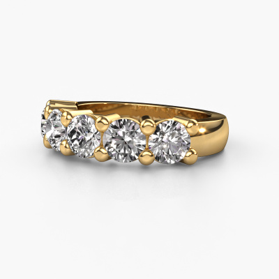 This extraordinary ring is called Yasmin 5. This type of ring is known as a memoire ring, because its gemstones are set in a continuous line. This makes it easy to combine with other rings. The band of this 14 Carat gold ring is set in a combination of diamond and diamond 2.50 crt. You can easily choose the combination you prefer online. As you can see, a single diamond is set in this single alliance gold ring. The memoire ring represents collaboration. And that is precisely what these gemstones do, collaborate. Together they add a beautiful effect to the band of a classic ring! Such a meaningful ring, wouldn't you agree? All our hand selected diamonds are positioned by hand by our expert goldsmith. It's a precise task, which can only be completed successfully through the combination of pure craftsmanship and usage of the latest techniques which give it an optimal effect. To create a perfect reflection of light, all the gemstones have to be perfectly aligned in the same way. During manufacturing, the expert goldsmith will therefore monitor the reflection of light constantly to check whether the diamonds are aligned properly. This requires a skilled hand and a lot of patience but then the end product will be a true piece of art. And that is our mission!After receiving your order, our goldsmiths will passionately start the creative process of making your ring in our own studio. Because we don't have a big stockpile, these costs will not be passed on to you. Our pricing is proof of that! We offer top quality jewels at lowest price, guaranteed.Our talented designers add new designs to our online collection daily. Together they create a diverse collection of the finest jewellery. If you prefer to make a ring according your own design, please feel free to request a quote. We will make you an amazing offer, based on quality and price.To make it easier for you, we offer a 30 day return policy. Check our terms and conditions.