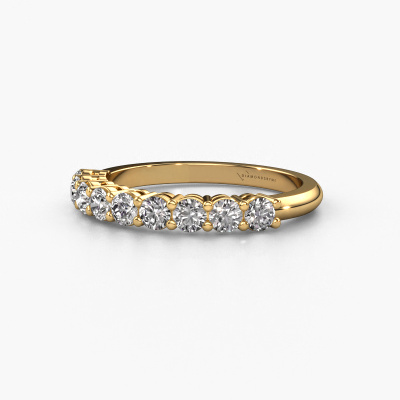 This extraordinary ring is called Michelle 9. This type of ring is known as a memoire ring, because its gemstones are set in a continuous line. This makes it easy to combine with other rings. The band of this 14 Carat gold ring is set in a combination of zirconia and lab grown diamond 2.7 mm. You can easily choose the combination you prefer online. As you can see, a single zirconia is set in this single alliance gold ring. The memoire ring represents collaboration. And that is precisely what these gemstones do, collaborate. Together they add a beautiful effect to the band of a classic ring! Such a meaningful ring, wouldn't you agree? All our hand selected cz-stones are positioned by hand by our expert goldsmith. It's a precise task, which can only be completed successfully through the combination of pure craftsmanship and usage of the latest techniques which give it an optimal effect. To create a perfect reflection of light, all the gemstones have to be perfectly aligned in the same way. During manufacturing, the expert goldsmith will therefore monitor the reflection of light constantly to check whether the cz-stones are aligned properly. This requires a skilled hand and a lot of patience but then the end product will be a true piece of art. And that is our mission!Because we design and deliver our own rings, we can offer you a ring at a price you won't find anywhere else. A ring is made to order, which helps prevent excess supplies, so we can make you a great price offer. We understand it feels risky, buying your ring online, but we will gladly assist in the designing process, taking your budget into consideration.Our team of talented, passionate designers add new ring designs to our online collection daily. Our objective in doing so, is to be able to offer you a wide variety of jewels. Please feel free to request a quote if you have specific wishes for your ring. We guarantee to make you an offer you can't refuse.To make it easier for you, we offer a 30 day return policy. Check our terms and conditions.