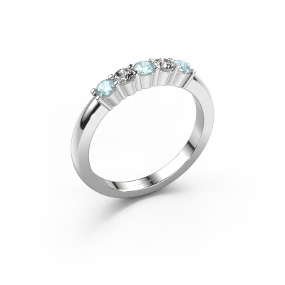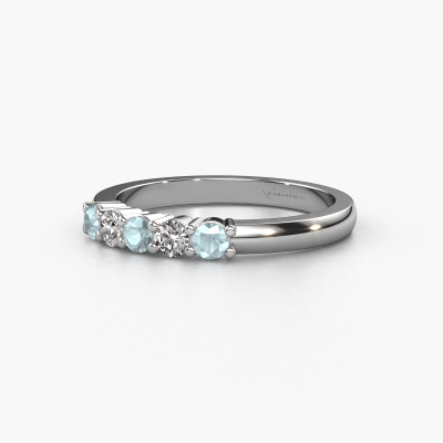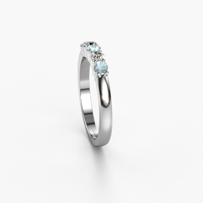 This extraordinary ring is called Yasmin 5. This type of ring is known as a memoire ring, because its gemstones are set in a continuous line. This makes it easy to combine with other rings. The band of this platinum ring is set in a combination of aquamarine and diamond 3 mm. You can easily choose the combination you prefer online. As you can see, a single aquamarine is set in this single alliance platinum ring. The memoire ring represents collaboration. And that is precisely what these gemstones do, collaborate. Together they add a beautiful effect to the band of a classic ring! Such a meaningful ring, wouldn't you agree? All our hand selected aquamarine are positioned by hand by our expert goldsmith. It's a precise task, which can only be completed successfully through the combination of pure craftsmanship and usage of the latest techniques which give it an optimal effect. To create a perfect reflection of light, all the gemstones have to be perfectly aligned in the same way. During manufacturing, the expert goldsmith will therefore monitor the reflection of light constantly to check whether the aquamarine are aligned properly. This requires a skilled hand and a lot of patience but then the end product will be a true piece of art. And that is our mission!After receiving your order, our goldsmiths will passionately start the creative process of making your ring in our own studio. Because we don't have a big stockpile, these costs will not be passed on to you. Our pricing is proof of that! We offer top quality jewels at lowest price, guaranteed.Our talented designers add new designs to our online collection daily. Together they create a diverse collection of the finest jewellery. If you prefer to make a ring according your own design, please feel free to request a quote. We will make you an amazing offer, based on quality and price.To make it easier for you, we offer a 30 day return policy. Check our terms and conditions.