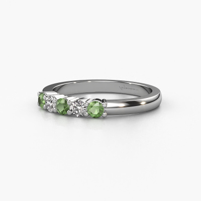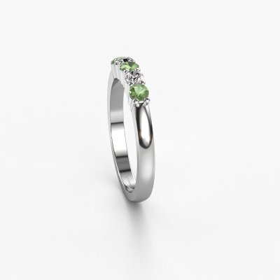 This extraordinary ring is called Yasmin 5. This type of ring is known as a memoire ring, because its gemstones are set in a continuous line. This makes it easy to combine with other rings. The band of this platinum ring is set in a combination of tourmaline green and diamond 3 mm. You can easily choose the combination you prefer online. As you can see, a single tourmaline green is set in this single alliance platinum ring. The memoire ring represents collaboration. And that is precisely what these gemstones do, collaborate. Together they add a beautiful effect to the band of a classic ring! Such a meaningful ring, wouldn't you agree? All our hand selected tourmaline green are positioned by hand by our expert goldsmith. It's a precise task, which can only be completed successfully through the combination of pure craftsmanship and usage of the latest techniques which give it an optimal effect. To create a perfect reflection of light, all the gemstones have to be perfectly aligned in the same way. During manufacturing, the expert goldsmith will therefore monitor the reflection of light constantly to check whether the tourmaline green are aligned properly. This requires a skilled hand and a lot of patience but then the end product will be a true piece of art. And that is our mission!After receiving your order, our goldsmiths will passionately start the creative process of making your ring in our own studio. Because we don't have a big stockpile, these costs will not be passed on to you. Our pricing is proof of that! We offer top quality jewels at lowest price, guaranteed.Our talented designers add new designs to our online collection daily. Together they create a diverse collection of the finest jewellery. If you prefer to make a ring according your own design, please feel free to request a quote. We will make you an amazing offer, based on quality and price.To make it easier for you, we offer a 30 day return policy. Check our terms and conditions.