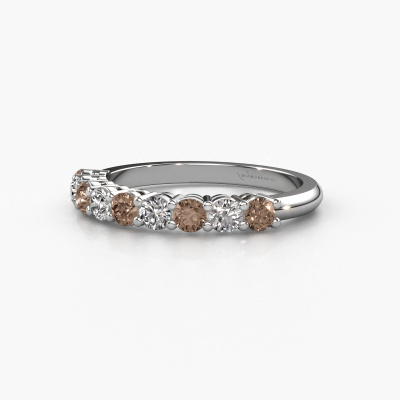 This extraordinary ring is called Michelle 9. This type of ring is known as a memoire ring, because its gemstones are set in a continuous line. This makes it easy to combine with other rings. The band of this platinum ring is set in a combination of brown diamond and lab grown diamond 0.72 crt. You can easily choose the combination you prefer online. As you can see, a single brown diamond is set in this single alliance platinum ring. The memoire ring represents collaboration. And that is precisely what these gemstones do, collaborate. Together they add a beautiful effect to the band of a classic ring! Such a meaningful ring, wouldn't you agree? All our hand selected brown diamonds are positioned by hand by our expert goldsmith. It's a precise task, which can only be completed successfully through the combination of pure craftsmanship and usage of the latest techniques which give it an optimal effect. To create a perfect reflection of light, all the gemstones have to be perfectly aligned in the same way. During manufacturing, the expert goldsmith will therefore monitor the reflection of light constantly to check whether the brown diamonds are aligned properly. This requires a skilled hand and a lot of patience but then the end product will be a true piece of art. And that is our mission!Because we design and deliver our own rings, we can offer you a ring at a price you won't find anywhere else. A ring is made to order, which helps prevent excess supplies, so we can make you a great price offer. We understand it feels risky, buying your ring online, but we will gladly assist in the designing process, taking your budget into consideration.Our team of talented, passionate designers add new ring designs to our online collection daily. Our objective in doing so, is to be able to offer you a wide variety of jewels. Please feel free to request a quote if you have specific wishes for your ring. We guarantee to make you an offer you can't refuse.To make it easier for you, we offer a 30 day return policy. Check our terms and conditions.