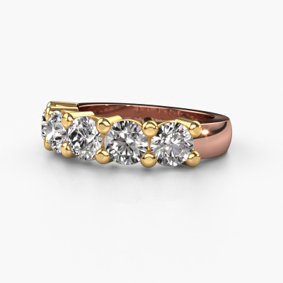 This extraordinary ring is called Yasmin 5. This type of ring is known as a memoire ring, because its gemstones are set in a continuous line. This makes it easy to combine with other rings. The band of this 14 Carat rose gold ring is set in a combination of diamond and diamond 2.50 crt. You can easily choose the combination you prefer online. As you can see, a single diamond is set in this single alliance rose gold ring. The memoire ring represents collaboration. And that is precisely what these gemstones do, collaborate. Together they add a beautiful effect to the band of a classic ring! Such a meaningful ring, wouldn't you agree? All our hand selected diamonds are positioned by hand by our expert goldsmith. It's a precise task, which can only be completed successfully through the combination of pure craftsmanship and usage of the latest techniques which give it an optimal effect. To create a perfect reflection of light, all the gemstones have to be perfectly aligned in the same way. During manufacturing, the expert goldsmith will therefore monitor the reflection of light constantly to check whether the diamonds are aligned properly. This requires a skilled hand and a lot of patience but then the end product will be a true piece of art. And that is our mission!After receiving your order, our goldsmiths will passionately start the creative process of making your ring in our own studio. Because we don't have a big stockpile, these costs will not be passed on to you. Our pricing is proof of that! We offer top quality jewels at lowest price, guaranteed.Our talented designers add new designs to our online collection daily. Together they create a diverse collection of the finest jewellery. If you prefer to make a ring according your own design, please feel free to request a quote. We will make you an amazing offer, based on quality and price.To make it easier for you, we offer a 30 day return policy. Check our terms and conditions.