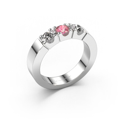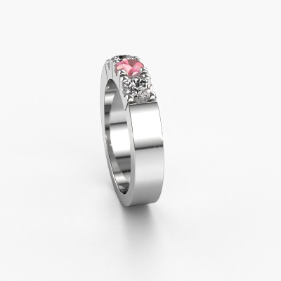 This extraordinary ring is called Dana 3. This type of ring is known as a memoire ring, because its gemstones are set in a continuous line. This makes it easy to combine with other rings. The band of this 14 Carat white gold ring is set in a combination of tourmaline pink and lab grown diamond 4 mm. You can easily choose the combination you prefer online. As you can see, a single tourmaline pink is set in this single alliance white gold ring. The memoire ring represents collaboration. And that is precisely what these gemstones do, collaborate. Together they add a beautiful effect to the band of a modern ring! Such a meaningful ring, wouldn't you agree? All our hand selected tourmaline pink are positioned by hand by our expert goldsmith. It's a precise task, which can only be completed successfully through the combination of pure craftsmanship and usage of the latest techniques which give it an optimal effect. To create a perfect reflection of light, all the gemstones have to be perfectly aligned in the same way. During manufacturing, the expert goldsmith will therefore monitor the reflection of light constantly to check whether the tourmaline pink are aligned properly. This requires a skilled hand and a lot of patience but then the end product will be a true piece of art. And that is our mission!After receiving your order, our goldsmiths will passionately start the creative process of making your ring in our own studio. Because we don't have a big stockpile, these costs will not be passed on to you. Our pricing is proof of that! We offer top quality jewels at lowest price, guaranteed.Our talented designers add new designs to our online collection daily. Together they create a diverse collection of the finest jewellery. If you prefer to make a ring according your own design, please feel free to request a quote. We will make you an amazing offer, based on quality and price.To make it easier for you, we offer a 30 day return policy. Check our terms and conditions.