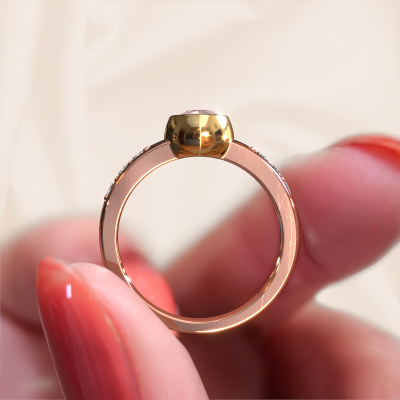 Are you looking for a daring ring with an eye-catching single gemstone? How do you like this Charlotte Pear ring? This rose gold Charlotte Pear ring is set with a beautiful 8x5 mm pear morganite champagne. The morganite champagne is carefully selected by our morganite champagne suppliers. Subsequently, these gemstones are then set by our goldsmith according to ancient tradition. The ring will then be polished to perfection creating a unique ring with a stunning morganite champagne. Created especially for you. Customize your own daringCharlotte Pear ring, which will then be created by our goldsmiths with great passion. Do you prefer a different option than is shown here in the rose gold Charlotte Pear ring? Then our online tools offers various options. Feel free to ask us for help if you are unable to succeed. We are happy to answer your questions!After receiving your order, our goldsmiths will passionately start the creative process of making your ring in our own studio. Because we don't have a big stockpile, these costs will not be passed on to you. Our pricing is proof of that! We offer top quality jewels at lowest price, guaranteed.To make it easier for you, we offer a 30 day return policy. Check our terms and conditions.