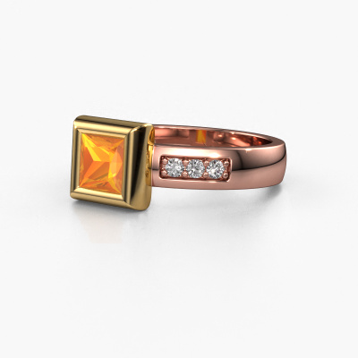 Are you looking for a edgy ring with an eye-catching single gemstone? How do you like this Charlotte Square ring? This rose gold Charlotte Square ring is set with a beautiful 5 mm princess citrin. The citrin is carefully selected by our citrin suppliers. Subsequently, these gemstones are then set by our goldsmith according to ancient tradition. The ring will then be polished to perfection creating a unique ring with a stunning citrin. Created especially for you. The best part of this edgy ring is that you can customize it to your own liking. Your style, your choice, your ring. On top of that, your modern rose gold ring will be made by hand with eco-friendly materials! Please feel free to easily customize the ring, using our online tool.By using our modern techniques, we can design and customize the finest quality jewels with the utmost care for you. Our rings are always priced 30 percent lower than other jewellers. We make rings to order, so we don't have to maintain a large stock. If you have a certain budget, we are more than happy to advice you accordingly.To make it easier for you, we offer a 30 day return policy. Check our terms and conditions.