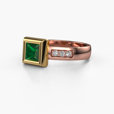 Are you looking for a edgy ring with an eye-catching single gemstone? How do you like this Charlotte Square ring? This rose gold Charlotte Square ring is set with a beautiful 5 mm princess emerald. The emerald is carefully selected by our emerald suppliers. Subsequently, these gemstones are then set by our goldsmith according to ancient tradition. The ring will then be polished to perfection creating a unique ring with a stunning emerald. Created especially for you. The best part of this edgy ring is that you can customize it to your own liking. Your style, your choice, your ring. On top of that, your modern rose gold ring will be made by hand with eco-friendly materials! Please feel free to easily customize the ring, using our online tool.By using our modern techniques, we can design and customize the finest quality jewels with the utmost care for you. Our rings are always priced 30 percent lower than other jewellers. We make rings to order, so we don't have to maintain a large stock. If you have a certain budget, we are more than happy to advice you accordingly.To make it easier for you, we offer a 30 day return policy. Check our terms and conditions.