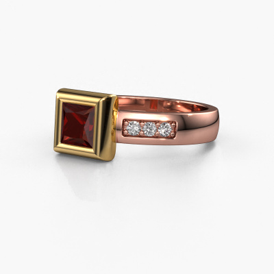 Are you looking for a edgy ring with an eye-catching single gemstone? How do you like this Charlotte Square ring? This rose gold Charlotte Square ring is set with a beautiful 5 mm princess garnet. The garnet is carefully selected by our garnet suppliers. Subsequently, these gemstones are then set by our goldsmith according to ancient tradition. The ring will then be polished to perfection creating a unique ring with a stunning garnet. Created especially for you. The best part of this edgy ring is that you can customize it to your own liking. Your style, your choice, your ring. On top of that, your modern rose gold ring will be made by hand with eco-friendly materials! Please feel free to easily customize the ring, using our online tool.By using our modern techniques, we can design and customize the finest quality jewels with the utmost care for you. Our rings are always priced 30 percent lower than other jewellers. We make rings to order, so we don't have to maintain a large stock. If you have a certain budget, we are more than happy to advice you accordingly.To make it easier for you, we offer a 30 day return policy. Check our terms and conditions.