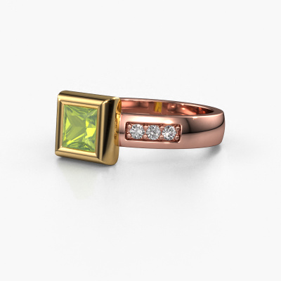 Are you looking for a edgy ring with an eye-catching single gemstone? How do you like this Charlotte Square ring? This rose gold Charlotte Square ring is set with a beautiful 5 mm princess peridot. The peridot is carefully selected by our peridot suppliers. Subsequently, these gemstones are then set by our goldsmith according to ancient tradition. The ring will then be polished to perfection creating a unique ring with a stunning peridot. Created especially for you. The best part of this edgy ring is that you can customize it to your own liking. Your style, your choice, your ring. On top of that, your modern rose gold ring will be made by hand with eco-friendly materials! Please feel free to easily customize the ring, using our online tool.By using our modern techniques, we can design and customize the finest quality jewels with the utmost care for you. Our rings are always priced 30 percent lower than other jewellers. We make rings to order, so we don't have to maintain a large stock. If you have a certain budget, we are more than happy to advice you accordingly.To make it easier for you, we offer a 30 day return policy. Check our terms and conditions.