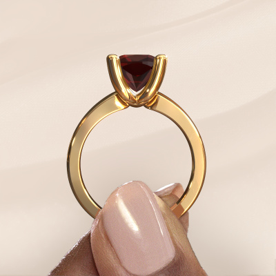 Are you looking for a birthstones ring with an eye-catching single gemstone? How do you like this Clelia CUS ring? This gold Clelia CUS ring is set with a beautiful 8 mm cushion garnet. The garnet is carefully selected by our garnet suppliers. Subsequently, these gemstones are then set by our goldsmith according to ancient tradition. The ring will then be polished to perfection creating a unique ring with a stunning garnet. Created especially for you. The best part of this birthstones ring is that you can customize it to your own liking. Your style, your choice, your ring. On top of that, your modern gold ring will be made by hand with eco-friendly materials! Please feel free to easily customize the ring, using our online tool.Because we design and deliver our own rings, we can offer you a ring at a price you won't find anywhere else. A ring is made to order, which helps prevent excess supplies, so we can make you a great price offer. We understand it feels risky, buying your ring online, but we will gladly assist in the designing process, taking your budget into consideration.To make it easier for you, we offer a 30 day return policy. Check our terms and conditions.