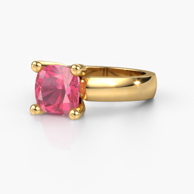 Are you looking for a birthstones ring with an eye-catching single gemstone? How do you like this Clelia CUS ring? This gold Clelia CUS ring is set with a beautiful 8 mm cushion pink sapphire. The pink sapphire is carefully selected by our pink sapphire suppliers. Subsequently, these gemstones are then set by our goldsmith according to ancient tradition. The ring will then be polished to perfection creating a unique ring with a stunning pink sapphire. Created especially for you. The best part of this birthstones ring is that you can customize it to your own liking. Your style, your choice, your ring. On top of that, your modern gold ring will be made by hand with eco-friendly materials! Please feel free to easily customize the ring, using our online tool.Because we design and deliver our own rings, we can offer you a ring at a price you won't find anywhere else. A ring is made to order, which helps prevent excess supplies, so we can make you a great price offer. We understand it feels risky, buying your ring online, but we will gladly assist in the designing process, taking your budget into consideration.To make it easier for you, we offer a 30 day return policy. Check our terms and conditions.