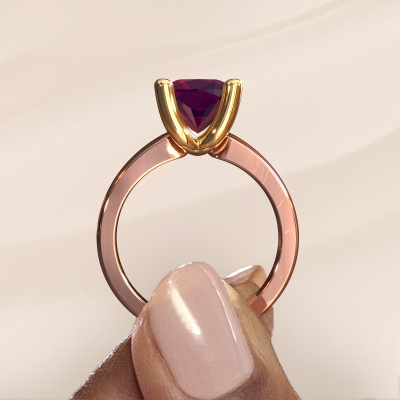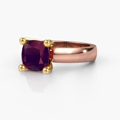 Are you looking for a birthstones ring with an eye-catching single gemstone? How do you like this Clelia CUS ring? This rose gold Clelia CUS ring is set with a beautiful 8 mm cushion rhodolite. The rhodolite is carefully selected by our rhodolite suppliers. Subsequently, these gemstones are then set by our goldsmith according to ancient tradition. The ring will then be polished to perfection creating a unique ring with a stunning rhodolite. Created especially for you. The best part of this birthstones ring is that you can customize it to your own liking. Your style, your choice, your ring. On top of that, your modern rose gold ring will be made by hand with eco-friendly materials! Please feel free to easily customize the ring, using our online tool.Because we design and deliver our own rings, we can offer you a ring at a price you won't find anywhere else. A ring is made to order, which helps prevent excess supplies, so we can make you a great price offer. We understand it feels risky, buying your ring online, but we will gladly assist in the designing process, taking your budget into consideration.To make it easier for you, we offer a 30 day return policy. Check our terms and conditions.