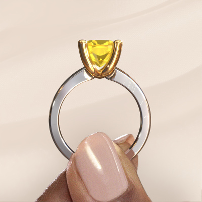 Are you looking for a birthstones ring with an eye-catching single gemstone? How do you like this Clelia CUS ring? This white gold Clelia CUS ring is set with a beautiful 8 mm cushion yellow sapphire. The yellow sapphire is carefully selected by our yellow sapphire suppliers. Subsequently, these gemstones are then set by our goldsmith according to ancient tradition. The ring will then be polished to perfection creating a unique ring with a stunning yellow sapphire. Created especially for you. The best part of this birthstones ring is that you can customize it to your own liking. Your style, your choice, your ring. On top of that, your modern white gold ring will be made by hand with eco-friendly materials! Please feel free to easily customize the ring, using our online tool.Because we design and deliver our own rings, we can offer you a ring at a price you won't find anywhere else. A ring is made to order, which helps prevent excess supplies, so we can make you a great price offer. We understand it feels risky, buying your ring online, but we will gladly assist in the designing process, taking your budget into consideration.To make it easier for you, we offer a 30 day return policy. Check our terms and conditions.