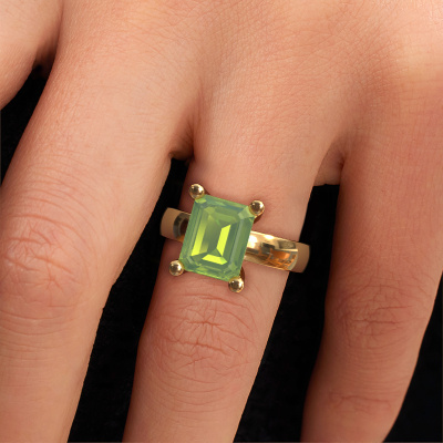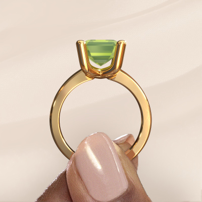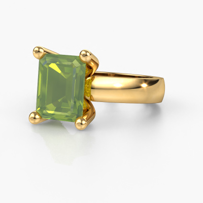 Are you looking for a birthstones ring with an eye-catching single gemstone? How do you like this Clelia EME ring? This gold Clelia EME ring is set with a beautiful 10x8 mm emerald cut peridot. The peridot is carefully selected by our peridot suppliers. Subsequently, these gemstones are then set by our goldsmith according to ancient tradition. The ring will then be polished to perfection creating a unique ring with a stunning peridot. Created especially for you. A customized modern ring is the perfect gift! New exquisite designs are added daily by our team of passionate goldsmiths. And each design can be customized. Simply customize the precious metals and the colour of gemstones which will be used, for example. This makes your design of the modern Clelia EME ring truly unique!After receiving your order, our goldsmiths will start the creative process of making your Clelia EME ring. We don't keep stock. This is advantageous because these costs will not be passed on to you. Therefore, we can offer jewellery at exceptionally low prices.To make it easier for you, we offer a 30 day return policy. Check our terms and conditions.