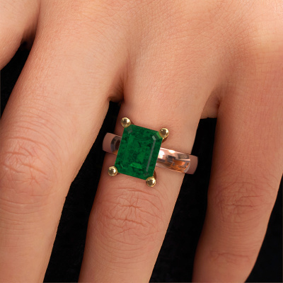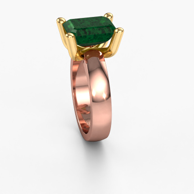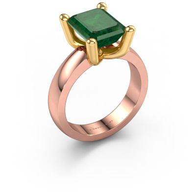 Are you looking for a birthstones ring with an eye-catching single gemstone? How do you like this Clelia EME ring? This rose gold Clelia EME ring is set with a beautiful 10x8 mm emerald cut emerald. The emerald is carefully selected by our emerald suppliers. Subsequently, these gemstones are then set by our goldsmith according to ancient tradition. The ring will then be polished to perfection creating a unique ring with a stunning emerald. Created especially for you. A customized modern ring is the perfect gift! New exquisite designs are added daily by our team of passionate goldsmiths. And each design can be customized. Simply customize the precious metals and the colour of gemstones which will be used, for example. This makes your design of the modern Clelia EME ring truly unique!After receiving your order, our goldsmiths will start the creative process of making your Clelia EME ring. We don't keep stock. This is advantageous because these costs will not be passed on to you. Therefore, we can offer jewellery at exceptionally low prices.To make it easier for you, we offer a 30 day return policy. Check our terms and conditions.
