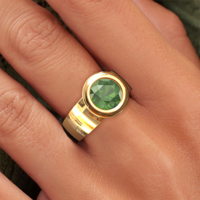 Are you looking for a elegant ring with an eye-catching single gemstone? How do you like this Maxime ring? This gold Maxime ring is set with a beautiful 8 mm round tourmaline green. The tourmaline green is carefully selected by our tourmaline green suppliers. Subsequently, these gemstones are then set by our goldsmith according to ancient tradition. The ring will then be polished to perfection creating a unique ring with a stunning tourmaline green. Created especially for you. How do you like this modern gold ring? Simply customize this Maxime ring, using our online tool. Subsequently, your personal elegant Maxime ring will be made by hand by our goldsmiths. Precious metals and gemstones can be customized to your liking. Do you have specific preferences which are unavailable in our online tool? Please feel free to contact us. We will customize your personal modern ring to your liking.Are you on a budget? Please feel free to contact us, so we can go discuss your options. We offer our rings at guaranteed best price, because we make them to order. You won't find such a price anywhere else!To make it easier for you, we offer a 30 day return policy. Check our terms and conditions.