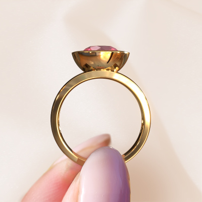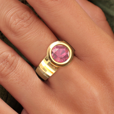 Are you looking for a elegant ring with an eye-catching single gemstone? How do you like this Maxime ring? This gold Maxime ring is set with a beautiful 8 mm round tourmaline pink. The tourmaline pink is carefully selected by our tourmaline pink suppliers. Subsequently, these gemstones are then set by our goldsmith according to ancient tradition. The ring will then be polished to perfection creating a unique ring with a stunning tourmaline pink. Created especially for you. How do you like this modern gold ring? Simply customize this Maxime ring, using our online tool. Subsequently, your personal elegant Maxime ring will be made by hand by our goldsmiths. Precious metals and gemstones can be customized to your liking. Do you have specific preferences which are unavailable in our online tool? Please feel free to contact us. We will customize your personal modern ring to your liking.Are you on a budget? Please feel free to contact us, so we can go discuss your options. We offer our rings at guaranteed best price, because we make them to order. You won't find such a price anywhere else!To make it easier for you, we offer a 30 day return policy. Check our terms and conditions.