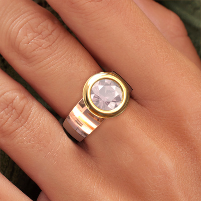 Are you looking for a elegant ring with an eye-catching single gemstone? How do you like this Maxime ring? This rose gold Maxime ring is set with a beautiful 8 mm round morganite champagne. The morganite champagne is carefully selected by our morganite champagne suppliers. Subsequently, these gemstones are then set by our goldsmith according to ancient tradition. The ring will then be polished to perfection creating a unique ring with a stunning morganite champagne. Created especially for you. How do you like this modern rose gold ring? Simply customize this Maxime ring, using our online tool. Subsequently, your personal elegant Maxime ring will be made by hand by our goldsmiths. Precious metals and gemstones can be customized to your liking. Do you have specific preferences which are unavailable in our online tool? Please feel free to contact us. We will customize your personal modern ring to your liking.Are you on a budget? Please feel free to contact us, so we can go discuss your options. We offer our rings at guaranteed best price, because we make them to order. You won't find such a price anywhere else!To make it easier for you, we offer a 30 day return policy. Check our terms and conditions.