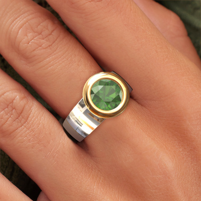 Are you looking for a elegant ring with an eye-catching single gemstone? How do you like this Maxime ring? This white gold Maxime ring is set with a beautiful 8 mm round tourmaline green. The tourmaline green is carefully selected by our tourmaline green suppliers. Subsequently, these gemstones are then set by our goldsmith according to ancient tradition. The ring will then be polished to perfection creating a unique ring with a stunning tourmaline green. Created especially for you. How do you like this modern white gold ring? Simply customize this Maxime ring, using our online tool. Subsequently, your personal elegant Maxime ring will be made by hand by our goldsmiths. Precious metals and gemstones can be customized to your liking. Do you have specific preferences which are unavailable in our online tool? Please feel free to contact us. We will customize your personal modern ring to your liking.Are you on a budget? Please feel free to contact us, so we can go discuss your options. We offer our rings at guaranteed best price, because we make them to order. You won't find such a price anywhere else!To make it easier for you, we offer a 30 day return policy. Check our terms and conditions.