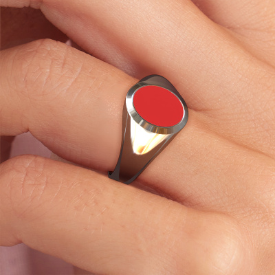 This platinum women´s signet ring is a true work of art! This is our beautiful Evon 1 signet ring and it is set with a oval shape red enamel. In our crafting studio, we use a combination of the latest techniques and ancient traditional craftsmanship, so we are able to create a detailed perfect signet ring. Our expert goldsmiths are fascinated by signet rings. The signet ring can be engraved with initials or a family weapon. Signet rings with family weapons can be handed down from generation to generation and that usually is the case. On top of that, a signet ring is a beautiful, classy piece of jewellery which is trending once more. More than one reason to start or extend the tradition. Please browse our online database for more options on engravings. You can find the departments of our education centre at the bottom of this page. Our goldsmiths passionately create your customized signet ring to your liking with the utmost care. The platinum signet ring, as shown here, can be customized using our online tool. Feel free to ask our jewel designers for assistance if you want changes made which are unavailable in our online tool. We are happy to answer your questions.After receiving your order, our goldsmiths will passionately start the creative process of making your ring in our own studio. Because we don't have a big stockpile, these costs will not be passed on to you. Our pricing is proof of that! We offer top quality jewels at lowest price, guaranteed.To make it easier for you, we offer a 30 day return policy. Check our terms and conditions.