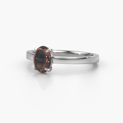 In this photo the platinum Mallie 1 ring is set with a cabochon smokey quartz. Cabochon means a smokey quartz is shaped first, not faceted, into a specific shape, such as a drop, heart or oval cabochon. Subsequently, it is polished until the gemstone has a orb shaped surface. A cabochon gemstone is a stunning, classy eye-catcher that matches perfectly with a contemporary as well as a vintage style. Our expert goldsmiths shape the tasteful ring to perfection which makes it unique. The cabochon smokey quartz is set so its unique qualities are strengthened. As soon as you finished designing your Mallie 1 ring with our online tool, our goldsmiths will start their creative process of making your ring. This will be done with passion and care, according ancient crafting. On top of that, our jewels are made of eco-friendly materials. Simply customize online with our online tool, if you want any changes made. If you want specific changes made to your Mallie 1 ring, that are unavailable in our online tool, please feel free to contact our expert designers.After receiving your order, our goldsmiths will passionately start the creative process of making your ring in our own studio. Because we don't have a big stockpile, these costs will not be passed on to you. Our pricing is proof of that! We offer top quality jewels at lowest price, guaranteed.To make it easier for you, we offer a 30 day return policy. Check our terms and conditions.