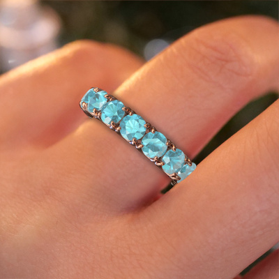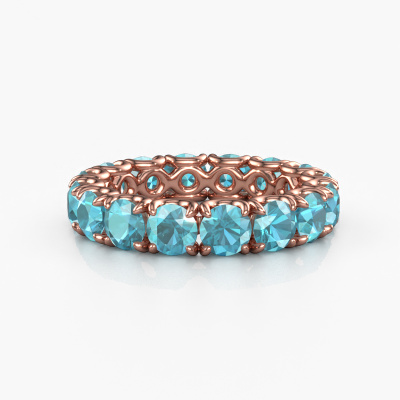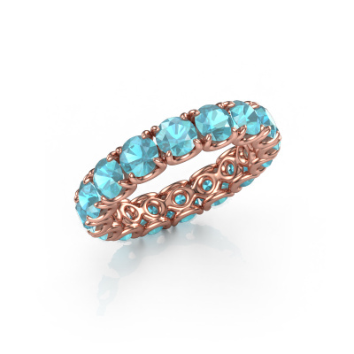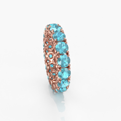 This Estee 4.2 ring in 14 Carat rose gold is set with blue topaz. This rose gold stacked Estee 4.2 ring is the perfect addition to your ring collection! As the name suggests, it is a ring which can be combined on one finger with another ring. It gives you the opportunity to create your own style. A stacked ring usually represents a certain memory of someone special or a memorable moment. It is common to combine a stacked ring, representing an anniversary, with a wedding ring. But this eternity ring, combined with your other rings, also makes a classy fashion item. The eternity Estee 4.2 ring, as shown here, can be customized to your liking. Our online tool offers many different options but please feel free to contact us if you want changes made to your Estee 4.2 ring, which are unavailable in our online tool.After receiving your order, our goldsmiths will passionately start the creative process of making your ring in our own studio. Because we don't have a big stockpile, these costs will not be passed on to you. Our pricing is proof of that! We offer top quality jewels at lowest price, guaranteed.To make it easier for you, we offer a 30 day return policy. Check our terms and conditions.