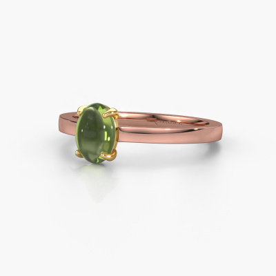 In this photo the rose gold Mallie 1 ring is set with a cabochon peridot. Cabochon means a peridot is shaped first, not faceted, into a specific shape, such as a drop, heart or oval cabochon. Subsequently, it is polished until the gemstone has a orb shaped surface. A cabochon gemstone is a stunning, classy eye-catcher that matches perfectly with a contemporary as well as a vintage style. Our expert goldsmiths shape the tasteful ring to perfection which makes it unique. The cabochon peridot is set so its unique qualities are strengthened. As soon as you finished designing your Mallie 1 ring with our online tool, our goldsmiths will start their creative process of making your ring. This will be done with passion and care, according ancient crafting. On top of that, our jewels are made of eco-friendly materials. Simply customize online with our online tool, if you want any changes made. If you want specific changes made to your Mallie 1 ring, that are unavailable in our online tool, please feel free to contact our expert designers.After receiving your order, our goldsmiths will passionately start the creative process of making your ring in our own studio. Because we don't have a big stockpile, these costs will not be passed on to you. Our pricing is proof of that! We offer top quality jewels at lowest price, guaranteed.To make it easier for you, we offer a 30 day return policy. Check our terms and conditions.