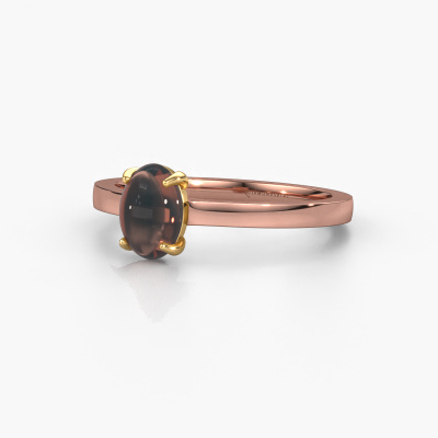 In this photo the rose gold Mallie 1 ring is set with a cabochon smokey quartz. Cabochon means a smokey quartz is shaped first, not faceted, into a specific shape, such as a drop, heart or oval cabochon. Subsequently, it is polished until the gemstone has a orb shaped surface. A cabochon gemstone is a stunning, classy eye-catcher that matches perfectly with a contemporary as well as a vintage style. Our expert goldsmiths shape the tasteful ring to perfection which makes it unique. The cabochon smokey quartz is set so its unique qualities are strengthened. As soon as you finished designing your Mallie 1 ring with our online tool, our goldsmiths will start their creative process of making your ring. This will be done with passion and care, according ancient crafting. On top of that, our jewels are made of eco-friendly materials. Simply customize online with our online tool, if you want any changes made. If you want specific changes made to your Mallie 1 ring, that are unavailable in our online tool, please feel free to contact our expert designers.After receiving your order, our goldsmiths will passionately start the creative process of making your ring in our own studio. Because we don't have a big stockpile, these costs will not be passed on to you. Our pricing is proof of that! We offer top quality jewels at lowest price, guaranteed.To make it easier for you, we offer a 30 day return policy. Check our terms and conditions.