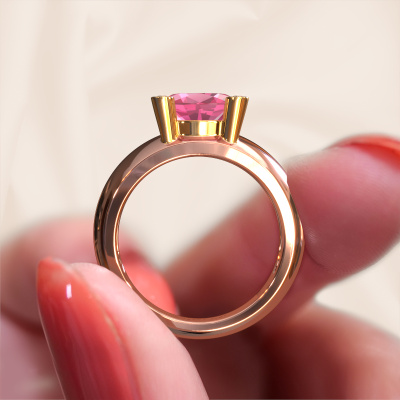 Are you looking for a fashionable ring with an eye-catching single gemstone? How do you like this Tamara OVL ring? This rose gold Tamara OVL ring is set with a beautiful 9x7 mm oval pink sapphire. The pink sapphire is carefully selected by our pink sapphire suppliers. Subsequently, these gemstones are then set by our goldsmith according to ancient tradition. The ring will then be polished to perfection creating a unique ring with a stunning pink sapphire. Created especially for you. A customized modern ring is the perfect gift! New exquisite designs are added daily by our team of passionate goldsmiths. And each design can be customized. Simply customize the precious metals and the colour of gemstones which will be used, for example. This makes your design of the modern Tamara OVL ring truly unique!After receiving your order, our goldsmiths will start the creative process of making your Tamara OVL ring. We don't keep stock. This is advantageous because these costs will not be passed on to you. Therefore, we can offer jewellery at exceptionally low prices.To make it easier for you, we offer a 30 day return policy. Check our terms and conditions.