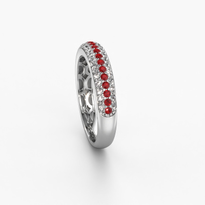 This Emely 4 ring in platinum is set with ruby. This platinum stacked Emely 4 ring is the perfect addition to your ring collection! As the name suggests, it is a ring which can be combined on one finger with another ring. It gives you the opportunity to create your own style. A stacked ring usually represents a certain memory of someone special or a memorable moment. It is common to combine a stacked ring, representing an anniversary, with a wedding ring. But this narrow ring, combined with your other rings, also makes a classy fashion item. As soon as you finished designing your Emely 4 ring with our online tool, our goldsmiths will start their creative process of making your ring. This will be done with passion and care, according ancient crafting. On top of that, our jewels are made of eco-friendly materials. Simply customize online with our online tool, if you want any changes made. If you want specific changes made to your Emely 4 ring, that are unavailable in our online tool, please feel free to contact our expert designers.By using a combination of the latest modern techniques, combined with ancient crafting, we can make all our rings in our own studio. Each jewel is made to order. This is advantageous because we can offer you a price you won't find anywhere else.To make it easier for you, we offer a 30 day return policy. Check our terms and conditions.