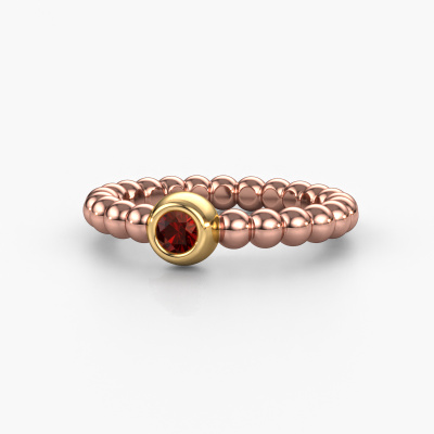 This Dini stackable ring in 14 Carat rose gold is set with garnet. This rose gold stacked Dini ring is the perfect addition to your ring collection! As the name suggests, it is a ring which can be combined on one finger with another ring. It gives you the opportunity to create your own style. A stacked ring usually represents a certain memory of someone special or a memorable moment. It is common to combine a stacked ring, representing an anniversary, with a wedding ring. But this orbs ring, combined with your other rings, also makes a classy fashion item. The best part of this orbs stackable ring is that you can customize it to your own liking. Your style, your choice, your stackable ring. On top of that, your trendy rose gold stackable ring will be made by hand with eco-friendly materials! Please feel free to easily customize the ring, using our online tool.After receiving your order, our goldsmiths will passionately start the creative process of making your ring in our own studio. Because we don't have a big stockpile, these costs will not be passed on to you. Our pricing is proof of that! We offer top quality jewels at lowest price, guaranteed.To make it easier for you, we offer a 30 day return policy. Check our terms and conditions.