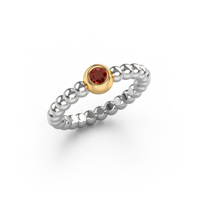 This Dini stackable ring in 14 Carat white gold is set with garnet. This white gold stacked Dini ring is the perfect addition to your ring collection! As the name suggests, it is a ring which can be combined on one finger with another ring. It gives you the opportunity to create your own style. A stacked ring usually represents a certain memory of someone special or a memorable moment. It is common to combine a stacked ring, representing an anniversary, with a wedding ring. But this orbs ring, combined with your other rings, also makes a classy fashion item. The best part of this orbs stackable ring is that you can customize it to your own liking. Your style, your choice, your stackable ring. On top of that, your trendy white gold stackable ring will be made by hand with eco-friendly materials! Please feel free to easily customize the ring, using our online tool.After receiving your order, our goldsmiths will passionately start the creative process of making your ring in our own studio. Because we don't have a big stockpile, these costs will not be passed on to you. Our pricing is proof of that! We offer top quality jewels at lowest price, guaranteed.To make it easier for you, we offer a 30 day return policy. Check our terms and conditions.
