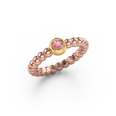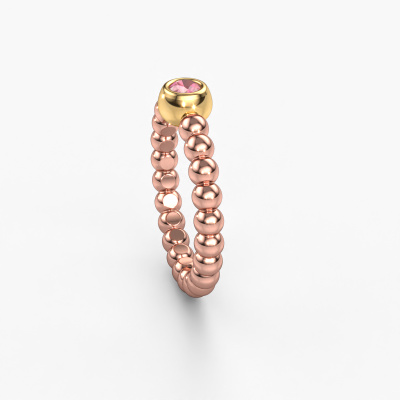 This Dini stackable ring in 14 Carat rose gold is set with tourmaline pink. This rose gold stacked Dini ring is the perfect addition to your ring collection! As the name suggests, it is a ring which can be combined on one finger with another ring. It gives you the opportunity to create your own style. A stacked ring usually represents a certain memory of someone special or a memorable moment. It is common to combine a stacked ring, representing an anniversary, with a wedding ring. But this orbs ring, combined with your other rings, also makes a classy fashion item. The best part of this orbs stackable ring is that you can customize it to your own liking. Your style, your choice, your stackable ring. On top of that, your trendy rose gold stackable ring will be made by hand with eco-friendly materials! Please feel free to easily customize the ring, using our online tool.After receiving your order, our goldsmiths will passionately start the creative process of making your ring in our own studio. Because we don't have a big stockpile, these costs will not be passed on to you. Our pricing is proof of that! We offer top quality jewels at lowest price, guaranteed.To make it easier for you, we offer a 30 day return policy. Check our terms and conditions.