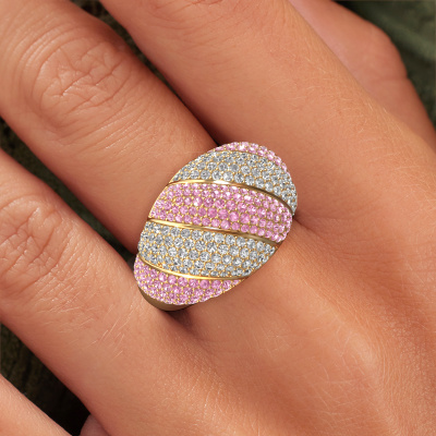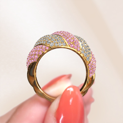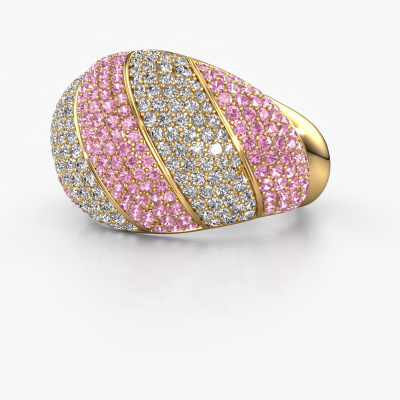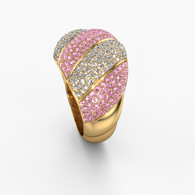 This exclusive gold Arleen 2 ring is a true work of art! This ring is made of 14 Carat gold and is set with 1 mm round pink sapphire. The smallest ornaments are crafted by our goldsmith with a lot of patience and great passion. In order to create this ring with great precision, this craft requires a keen eye and a skilful hand. A challenge which ignites a fire in our expert goldsmiths. The exquisite pink sapphire are set in a way that their unique qualities are strengthened. This gives the ring an even more glamorous appearance. The ring is unique by itself though, because of the natural birthstones we selected especially for this Arleen 2 ring. And by choosing the precious metal yourself, you create a unique ring. Customize your own pavé setArleen 2 ring, which will then be created by our goldsmiths with great passion. Do you prefer a different option than is shown here in the gold Arleen 2 ring? Then our online tools offers various options. Feel free to ask us for help if you are unable to succeed. We are happy to answer your questions!After receiving your order, our goldsmiths will start the creative process of making your Arleen 2 ring. We don't keep stock. This is advantageous because these costs will not be passed on to you. Therefore, we can offer jewellery at exceptionally low prices.To make it easier for you, we offer a 30 day return policy. Check our terms and conditions.