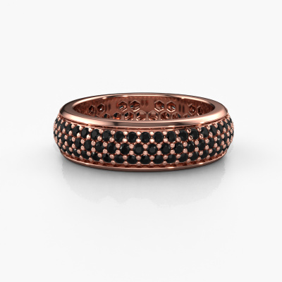 This is our Tara ring. This specific type is called an eternity ring and it is set with a continuous line of identically cut gemstones. The ring is made in 14 Carat rose gold and is set with small black diamonds, 1.584 crt. The amazing black diamonds are identical in size and are set in the ring band. Our black diamonds are selected with great care so they are identical, which gives the best result. In order to get the best result, our artisans position all black diamonds by hand with the utmost care. Our Goldsmiths have one ambition, which is creating the perfect ring. That is why we love what we do. In the end you get a stunning exclusive rose gold ring with a row of black diamonds which seem to have no beginning nor end. The perfect symbol of your undying love for her! How special is that!After receiving your order, our goldsmiths will start the creative process of making your Tara ring. We don't keep stock. This is advantageous because these costs will not be passed on to you. Therefore, we can offer jewellery at exceptionally low prices.