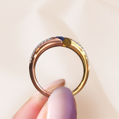 This exclusive rose gold Hojalien 3 ring is a true work of art! This ring is made of 14 Carat rose gold and is set with 4 mm round sapphire. The smallest ornaments are crafted by our goldsmith with a lot of patience and great passion. In order to create this ring with great precision, this craft requires a keen eye and a skilful hand. A challenge which ignites a fire in our expert goldsmiths. The exquisite sapphire are set in a way that their unique qualities are strengthened. This gives the ring an even more glamorous appearance. The ring is unique by itself though, because of the natural birthstones we selected especially for this Hojalien 3 ring. And by choosing the precious metal yourself, you create a unique ring. The best part of this pavé set ring is that you can customize it to your own liking. Your style, your choice, your ring. On top of that, your exclusive rose gold ring will be made by hand with eco-friendly materials! Please feel free to easily customize the ring, using our online tool.By using a combination of the latest modern techniques, combined with ancient crafting, we can make all our rings in our own studio. Each jewel is made to order. This is advantageous because we can offer you a price you won't find anywhere else.To make it easier for you, we offer a 30 day return policy. Check our terms and conditions.