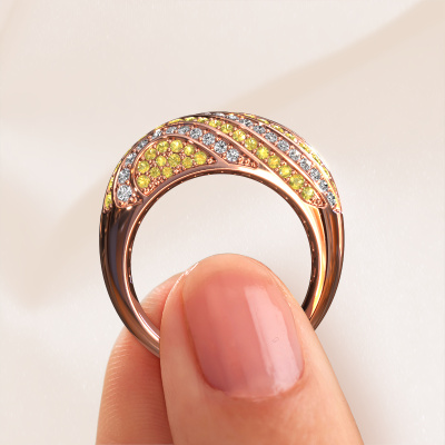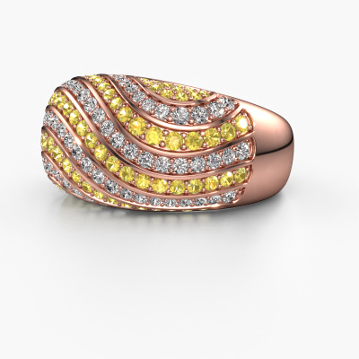 This exclusive rose gold Sonia ring is a true work of art! This ring is made of 14 Carat rose gold and is set with 1 mm round yellow sapphire. The smallest ornaments are crafted by our goldsmith with a lot of patience and great passion. In order to create this ring with great precision, this craft requires a keen eye and a skilful hand. A challenge which ignites a fire in our expert goldsmiths. The exquisite yellow sapphire are set in a way that their unique qualities are strengthened. This gives the ring an even more glamorous appearance. The ring is unique by itself though, because of the natural birthstones we selected especially for this Sonia ring. And by choosing the precious metal yourself, you create a unique ring. A customized luxury ring is the perfect gift! New exquisite designs are added daily by our team of passionate goldsmiths. And each design can be customized. Simply customize the precious metals and the colour of gemstones which will be used, for example. This makes your design of the luxury sonia ring truly unique!After receiving your order, our goldsmiths will passionately start the creative process of making your ring in our own studio. Because we don't have a big stockpile, these costs will not be passed on to you. Our pricing is proof of that! We offer top quality jewels at lowest price, guaranteed.To make it easier for you, we offer a 30 day return policy. Check our terms and conditions.