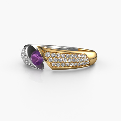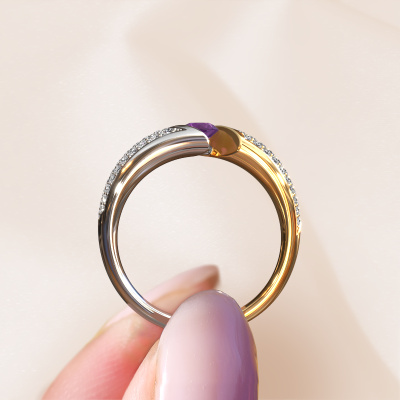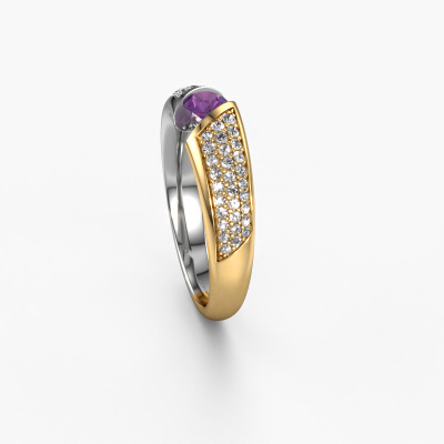 This exclusive white gold Hojalien 3 ring is a true work of art! This ring is made of 14 Carat white gold and is set with 4 mm round amethyst. The smallest ornaments are crafted by our goldsmith with a lot of patience and great passion. In order to create this ring with great precision, this craft requires a keen eye and a skilful hand. A challenge which ignites a fire in our expert goldsmiths. The exquisite amethysten are set in a way that their unique qualities are strengthened. This gives the ring an even more glamorous appearance. The ring is unique by itself though, because of the natural birthstones we selected especially for this Hojalien 3 ring. And by choosing the precious metal yourself, you create a unique ring. The best part of this pavé set ring is that you can customize it to your own liking. Your style, your choice, your ring. On top of that, your exclusive white gold ring will be made by hand with eco-friendly materials! Please feel free to easily customize the ring, using our online tool.By using a combination of the latest modern techniques, combined with ancient crafting, we can make all our rings in our own studio. Each jewel is made to order. This is advantageous because we can offer you a price you won't find anywhere else.To make it easier for you, we offer a 30 day return policy. Check our terms and conditions.